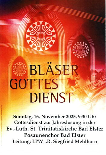 Am Sonntag, dem 16. November 2025 findet um 9:30 Uhr in unserer Ev.-Luth. St. Trinitatiskirche ein Bläsergottesdienst statt.