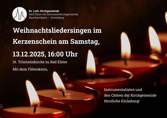 Am Samstag, dem 06. 12. 2025 um 19:30 Uhr in der Ev.-Luth. St. Trinitatiskirche Bad Elster und am Sonntag, dem 07. 12. 2025, um 17:00 Uhr in der Ev.-Luth. St. Jacobikirche Oelsnitz/V.