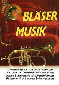 Am Sonntag, dem 16. November 2025 findet um 9:30 Uhr in unserer Ev.-Luth. St. Trinitatiskirche ein Bläsergottesdienst statt. Der Posaunenchor Bad Elster gestaltet unter Leitung von Landesposaunenwart i.R. Siegfried Mehlhorn diesen ganz besonderen Gottesdienst.