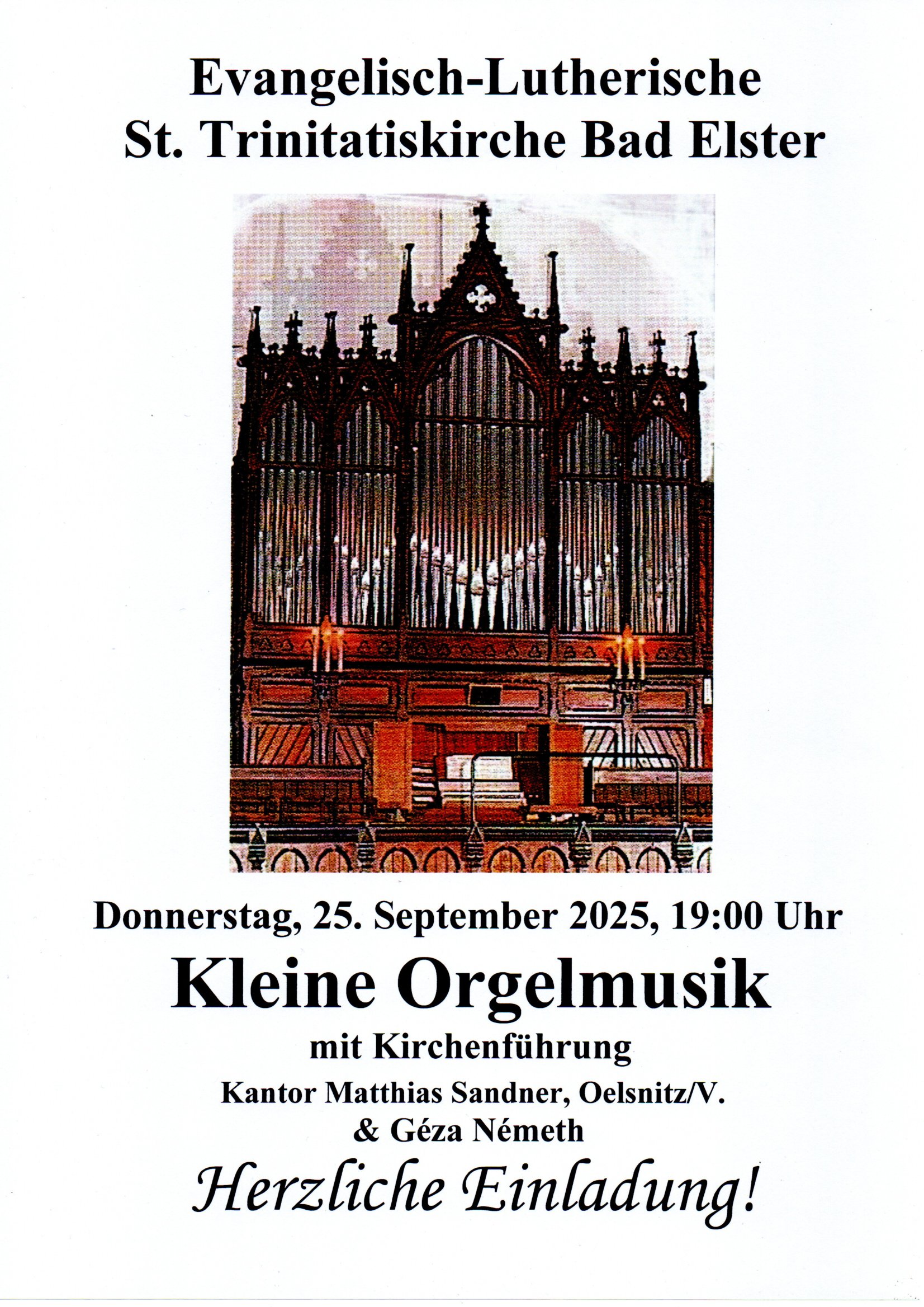 Am Donnerstag, dem 25. September 2025 findet um 19:00 Uhr die letzte Kleine Orgelmusik mit Kirchenführung im Jahr 2025 statt. Die Kantor der St. Jakobikirche in Oelsnitz, Matthias Sandner ist an der Eule-Orgel zu hören.